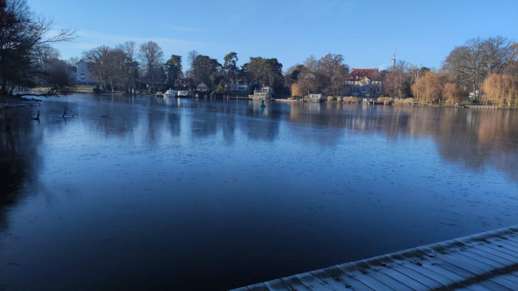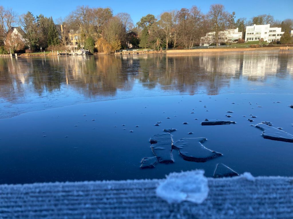Jetzt hat das Eis nur noch 1cm am Steg und es sind nur 10 Meter bis zum offenen Wasser.